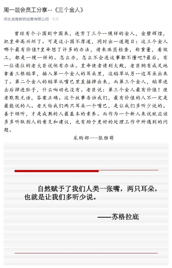 周一晨會(huì)員工分享--《三個(gè)金人》